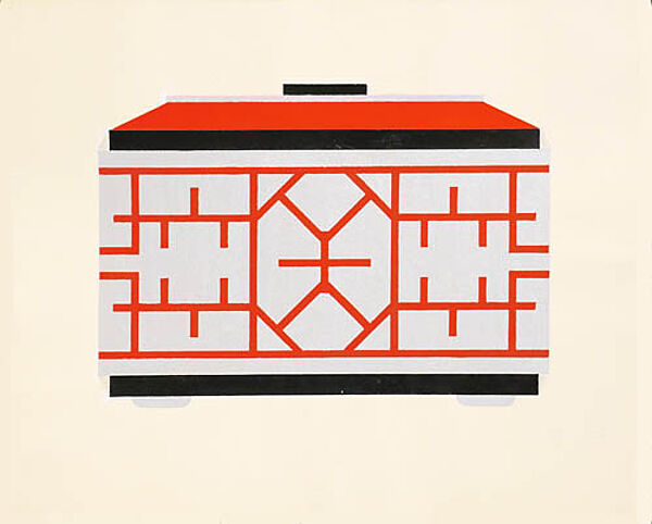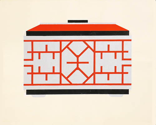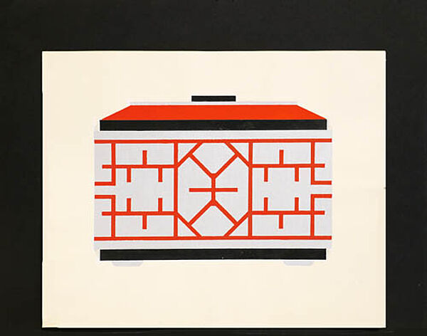 Gouache: Entwurf einer Deckeldose mit abstraktem Design