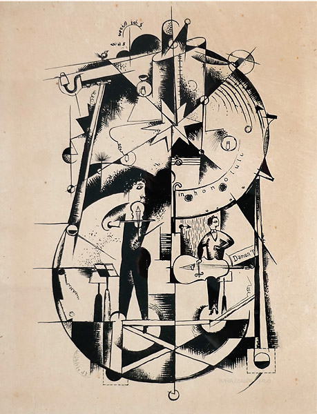 Lithografie: "in honolulu" (kubistisch-figürliche Komposition)