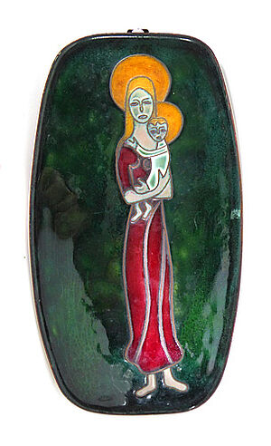 Wandplatte mit figürlicher Emailledarstellung Madonna mit Kind