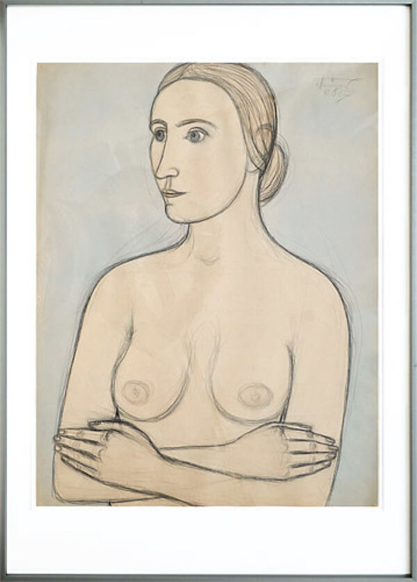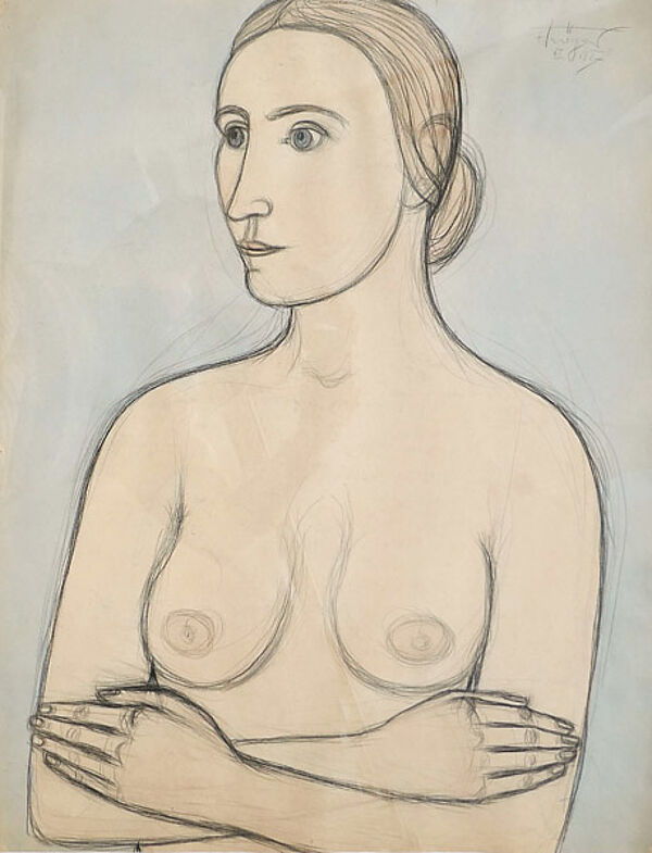 Mischtechnik auf Papier, rechts oben handsigniert und datiert "XI.8.1927". Hinter neuzeitlichem Passepartout und in neuzeitlichem, grauen Metallrahmen. Bildmaße ca. 65 x 50 cm, Rahmenaußenmaße ca. 85,5 x 60,5 cm, geringe Altersspuren.