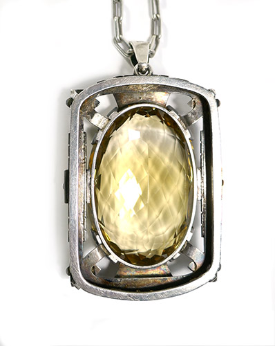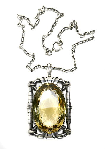 Prachtkette mit sehr großem Silberanhänger mit Citrin