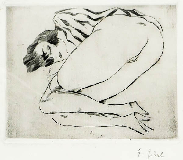 Radierung: ohne Titel (liegender weiblicher Akt)