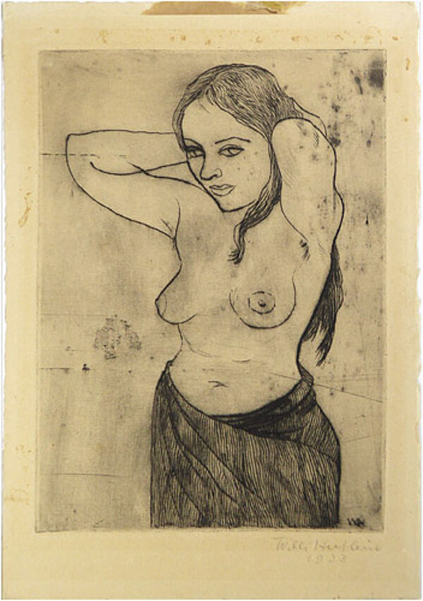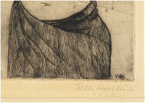 Radierung auf Bütten, rechts unterhalb der Darstellung handsigniert und datiert 1933. Blattmaße ca. 27 x 19 xm, Bildmaße ca. 22 x 15,6 cm, am äußeren oberen Rand Reste einer