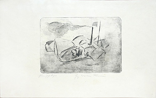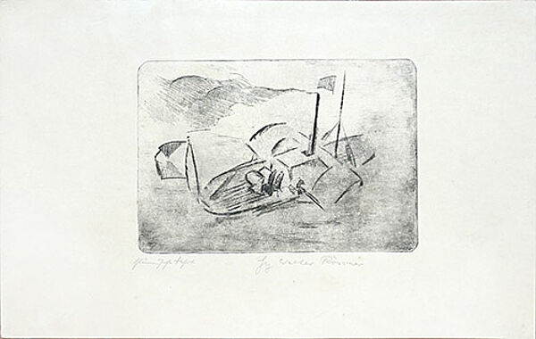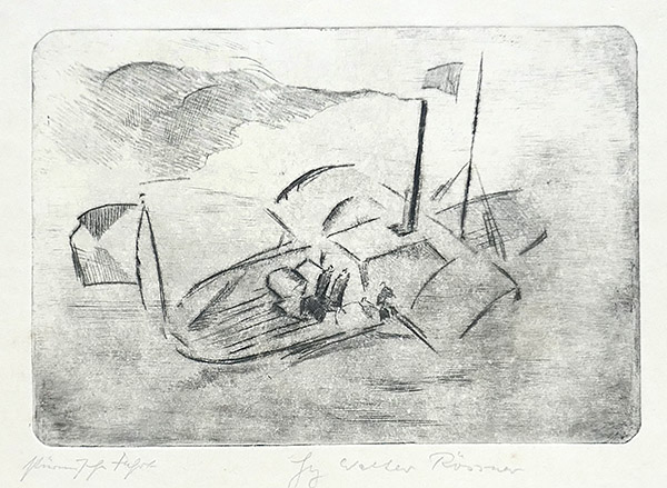 Radierung: "Stürmische Fahrt"