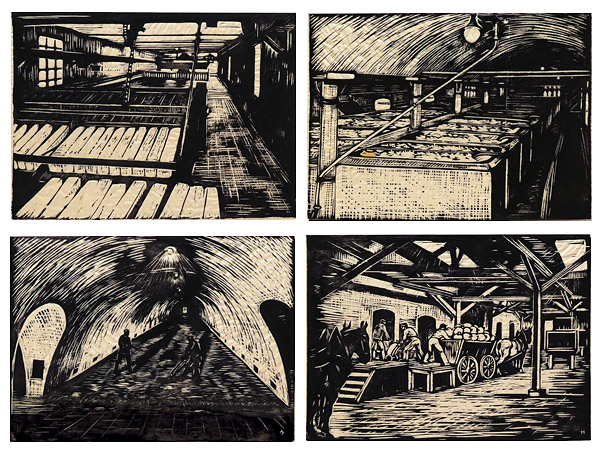 Serie von 16 Holzschnitten für die Freyberg-Brauerei in Halle / 1927