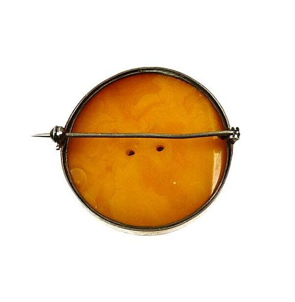 Silberne Bernsteinbrosche in Form eines Knopfes
