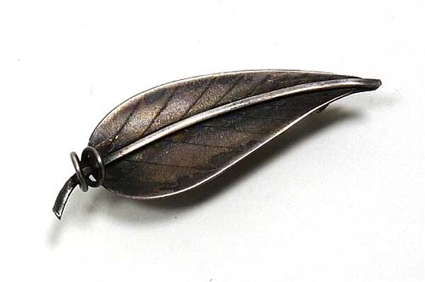 Silberne Brosche in Form eines Blattes