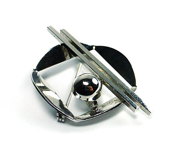 Silberne Brosche in geometrisch-abstrakter Formgebung