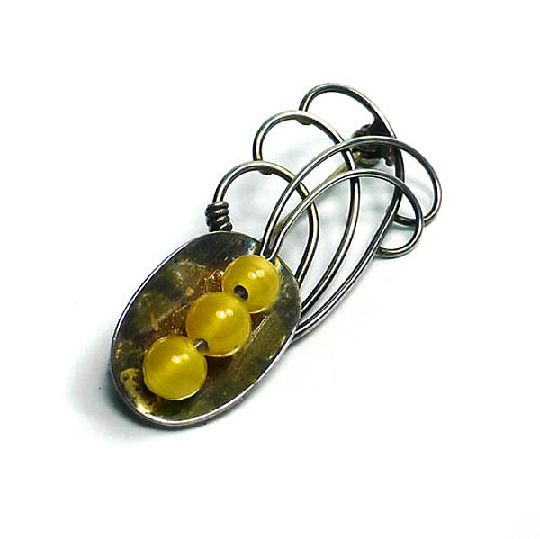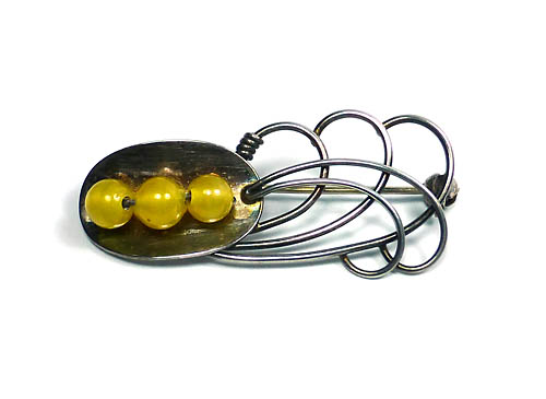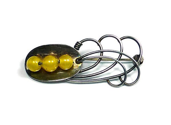 Silberne Brosche mit 3 gelben Glasperlen