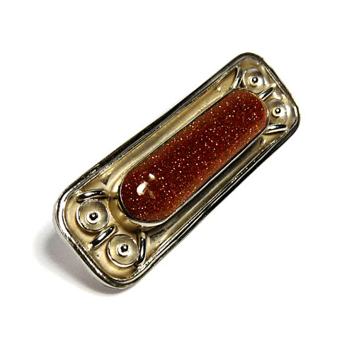 Silberne Brosche mit Goldfluss (Aventuringlas)