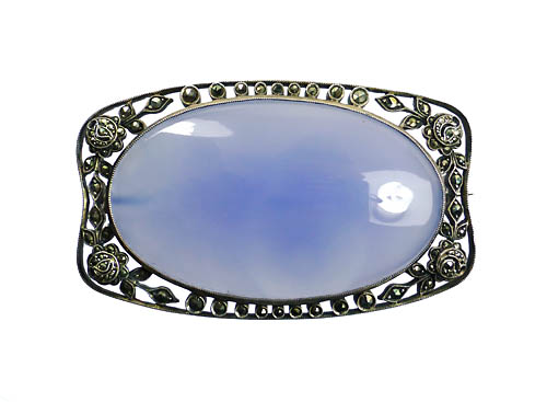 Silberne Brosche mit großem Chalcedon und Markasiten
