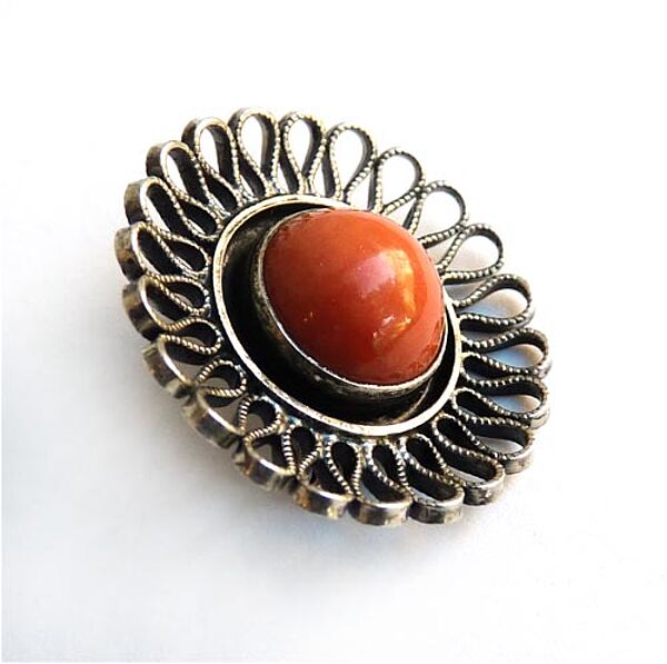 Silberne Brosche mit Koralle