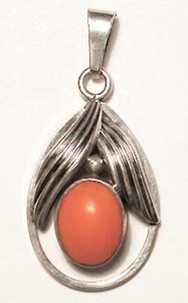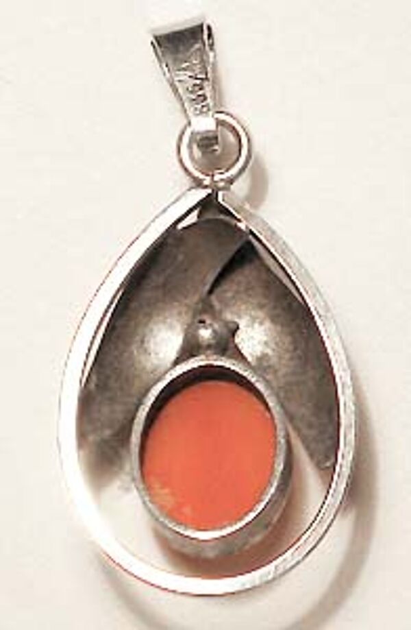 Silberner Anhänger mit Koralle