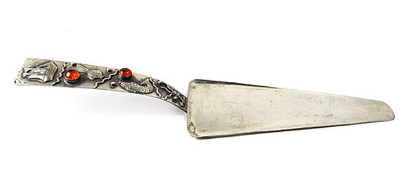 Silberner Kuchenheber mit Bernsteinen