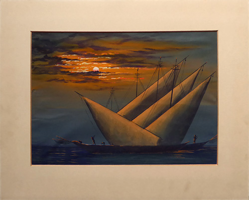 Tempera: ohne Titel (Schiff bei Vollmond)