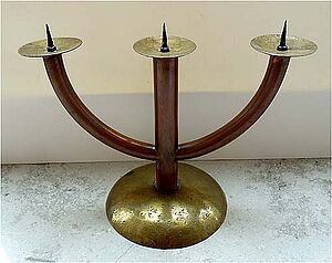 Dreiarmiger Leuchter aus Kupfer und Messing