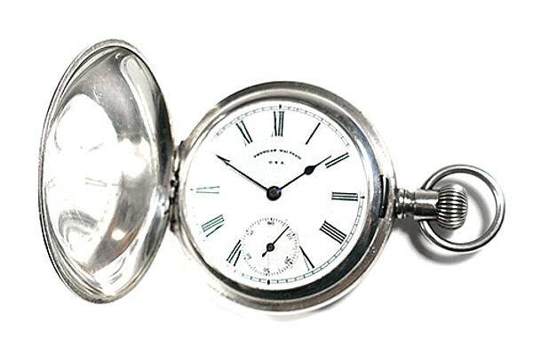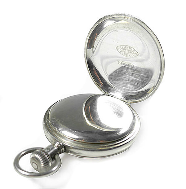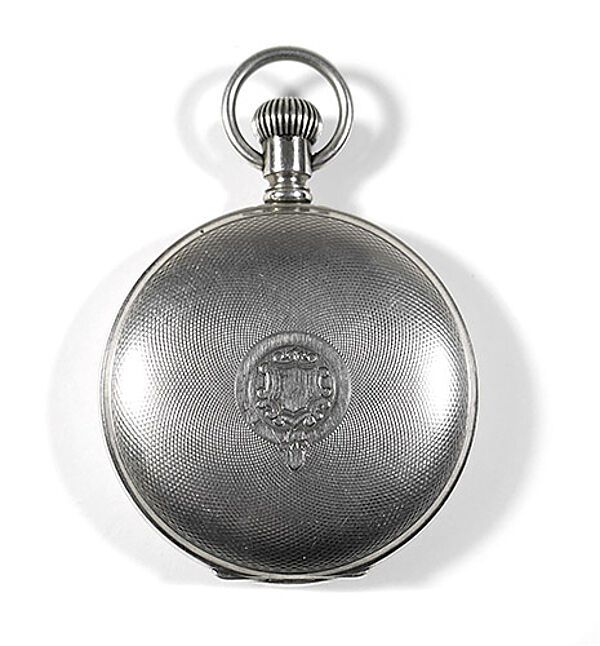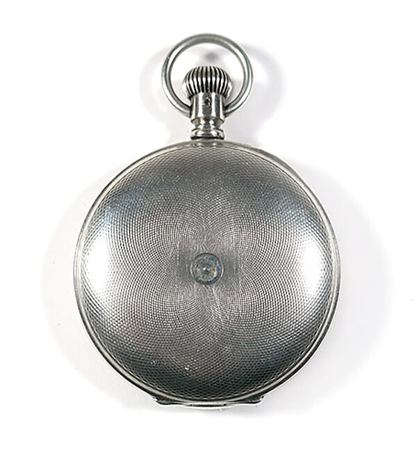 Silberne Sprungdeckel-Taschenuhr mit schweizer Ankergang und Brequet-Spirale, große Schrauben-Unruhe, vergoldetes Werk, Emailleziffernblatt mit römischen Zahlen und Sekundenanzeige bei 6 Uhr. Durchmesser ca. 5,2 cm, ungeputzter Zustand mit geringen Tragespuren. Rückseitig freie Monogrammkartusche. Die Uhr wurde vom Uhrmacher gereinigt, das Werk läuft, wir können aber hierauf keine Garantie geben. Wohl 1910er bis 30er Jahre.