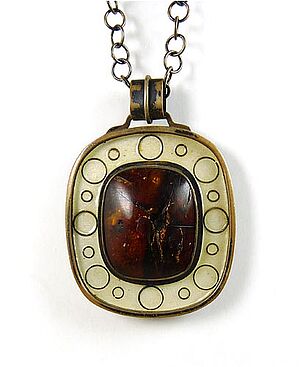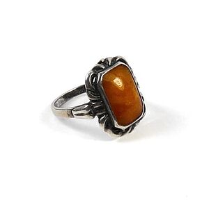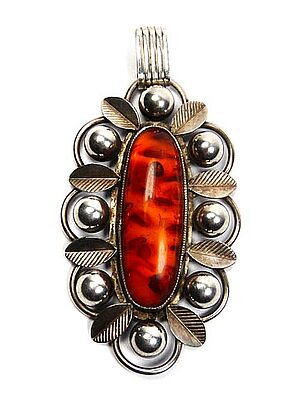 Silberner Bernsteinanhänger mit vegetabilen Elementen