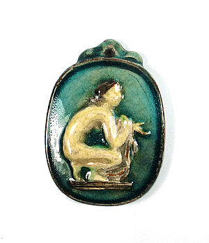 Keramikanhänger mit Darstellung eines kauernden, weiblichen Aktes