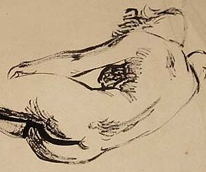 Mischtechnik: ohne Titel (sitzender weiblicher Akt)