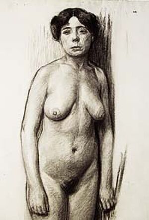 Expressive Kreidezeichnung: Sitzender weiblicher Akt