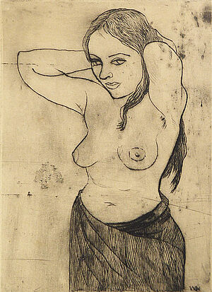 Radierung: ohne Titel (stehender weiblicher Akt / Neue Sachlichkeit)