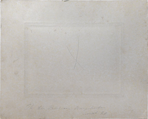 Brauntoniger Albuminabzug auf grautonigem Karton mit Passepartoutausschnitt kaschiert. Rückseitig bezeichnet oder signiert (?) "Ole Chr. Pedersen" und datiert "März (19)20". Bildmaße ca. 15 x 11,2 cm, Maße des Kartons ca. 26,2 x 21 cm. Geringe Alters-, Griff- und Lagerspuren.