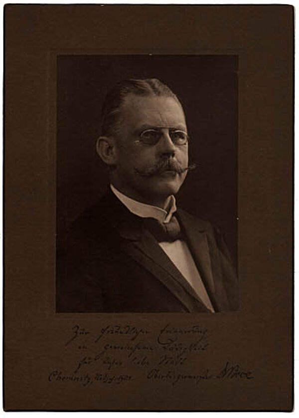 Heinrich Gustav von Beck (1854 - 1933), deutscher Jurist, war von 1890 bis 1895 Oberbürgermeister der Stadt Freiberg und von 1896 bis 1907 Oberbürgermeister der Stadt Chemnitz, die in dieser Zeit einen bedeutenden Aufschwung erfuhr. 1908 wurde er zum sächsischen Staatsminister und Vorstand des Ministeriums des Kultus und Öffentlichen Unterrichts berufen. Von 1914 - 1918 hatte er neben dem Posten des Kultusministers auch den Vorsitz des sächsischen Gesamtministeriums inne, was faktisch der Stellung eines Ministerpräsidenten gleichkam. 1918 wurde ihm als letztem sächsischen Untertan der erbliche Adel verliehen. Beck verlebte seinen Ruhestand in Dresden und Meißen, wo er für das Hochstift wirkte, zu dessen Domherrn, Dechanten und Dompropst er noch durch den König ernannt worden war. Quelle: Wikipedia 11/12.