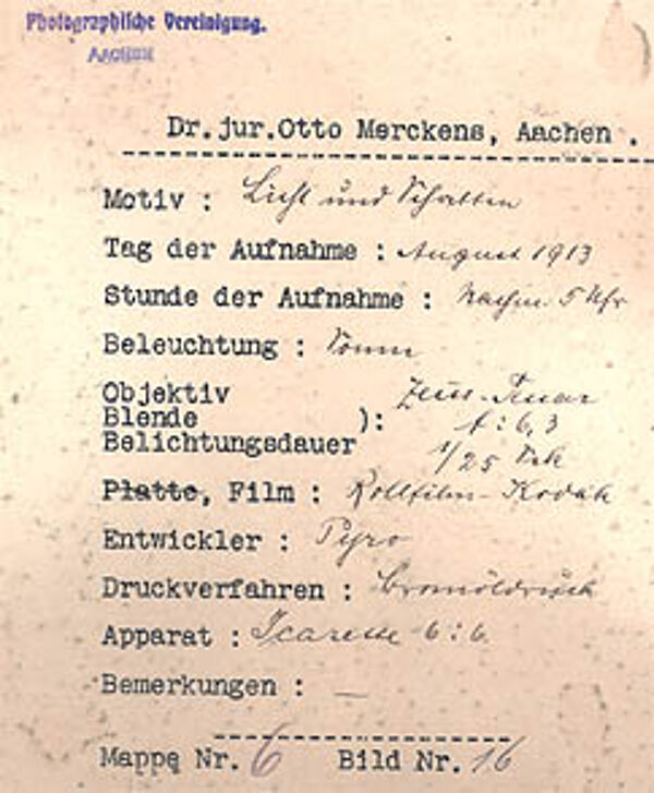 Maße des Bromöldrucks: ca. 21,5 cm x 16,5 cm, montiert auf festem Papier, rückseitig handschriftliche Dokumentation (wie z.B. Motiv, Tag und Stunde der Aufnahme, Objektiv, Blende, Platte, Druckverfahren, Apparat).