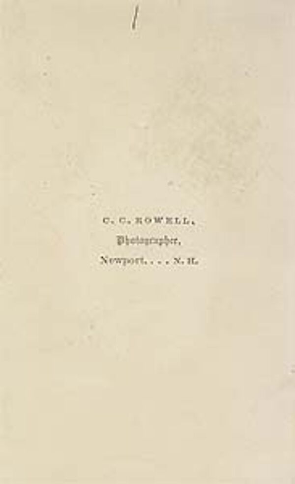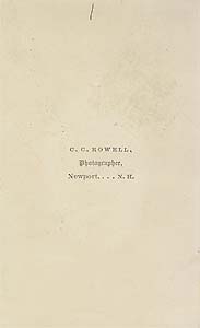 Albuminabzug (Maße: 9,2 x 5,5 cm), aufgezogen auf dünnem Karton (Maße: 10,1 x 6,1 cm) mit aufgedrucktem Goldrahmen (s. Foto). Auf der Rückseite bezeichnet "C.C. ROWELL, Photographer, Newport, ... N.H.". Moderate Griffspuren, wohl um 1870.