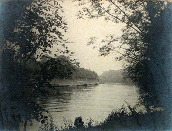 Leicht brauntonige Fotografie, montiert auf Pappeträger, rückseitig mit Bleistift bezeichnet: Halle a./S. Riveufer. Kanten diskret bestossen, rückseitig Montierungsreste einer alter Rahmung (das Foto selbst ist gut erhalten, lediglich im Randbereich leichte Aussilberung). Bildmaße ca. 18 x 23,5 cm, Gesamtgröße ca. 28,5 x 33,5 cm, wohl Ende der 20er, Anfang der 30er Jahre.