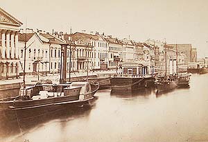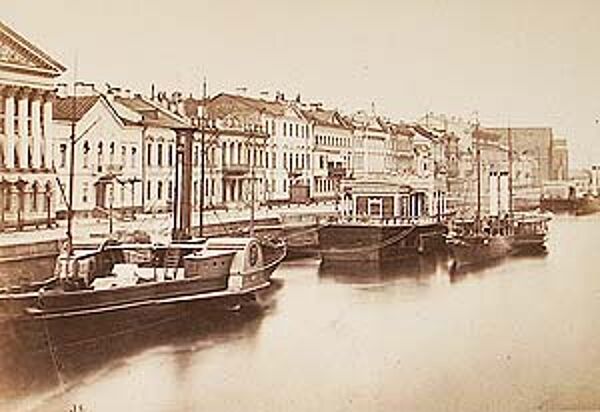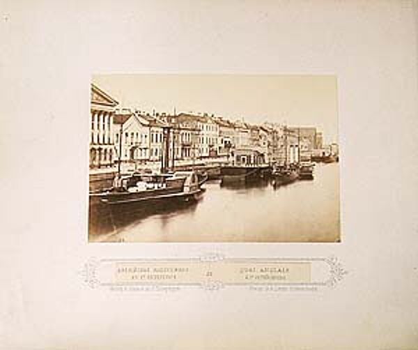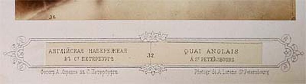 Brauntoniger Albuminabzug von ca. 16 x 11 cm, aufgezogen auf hellem Trägerkarton von ca. 28,5 x 23,5 cm. Hier kyrillisch und französisch bezeichnet ("Quai Anglais") sowie Angabe des Ateliers. Moderate Griff- und Altersspuren. Wohl um 1880.