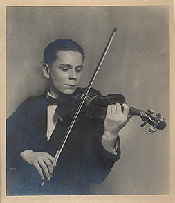 Barytabzug. Sachliches, fast strenges Porträt eines jungen Geigers. Auf Karton montiert. Foto 22,2 x 19,6 cm. Karton 35,9 x 29,8 cm. Foto tw. minimal ausgesilbert, siehe Bild. An den Kanten tw. kleine Bereibungen. Karton mit Altersspuren und rückseitig Montierungsspuren. unsigniert. 1920er Jahre.