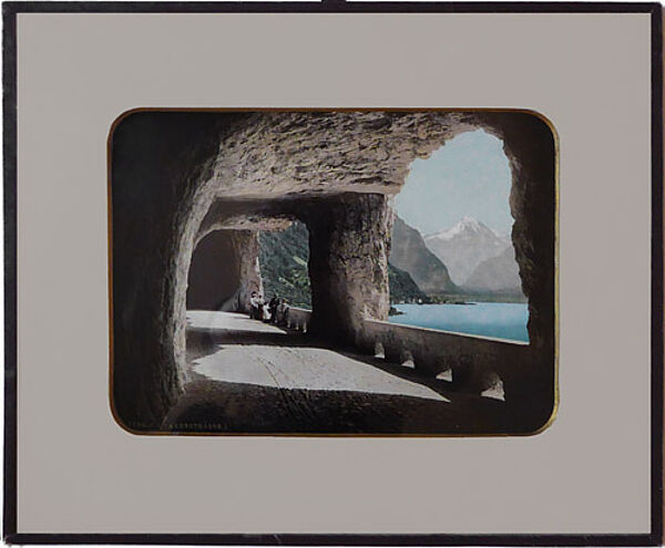 Kolorierter Albuminabzug: Axenstrasse (Kanton Uri / Schweiz)