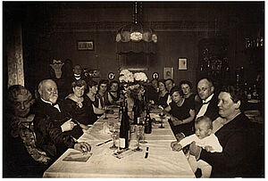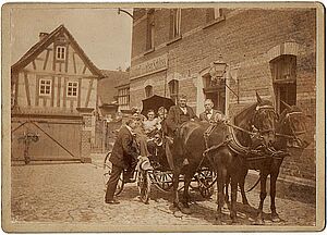 Albuminabzug: Kutschfahrtgesellschaft vor "Gasthof zum alten Schloss" / Waldeck 1901