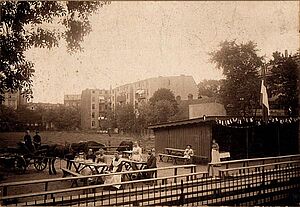 Albuminabzug: Biergarten des Schlossrestaurants Miramar / Chemnitz von 1908