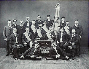 Großformatiger Albuminabzug: "Bäcker-Gesellschaft, Merseburg a.S. 1909", beigegeben Ehrenurkunde.