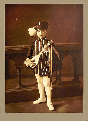 Großer, historistischer Albuminabzug: Knabe im Renaissance-Kostüm