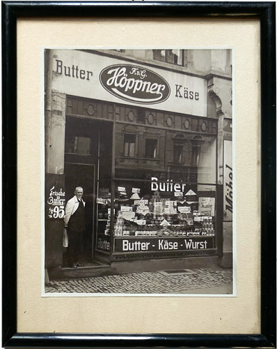 Vintage-Fotografie: Außenansicht des Lebensmittelladens Höppner in Weißenfels