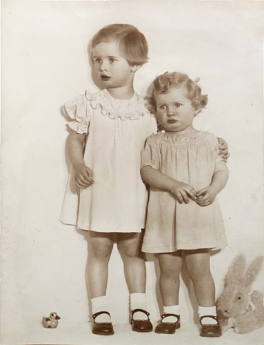 Vintage-Fotografie: Geschwisterpaar mit Spielzeug