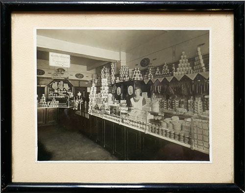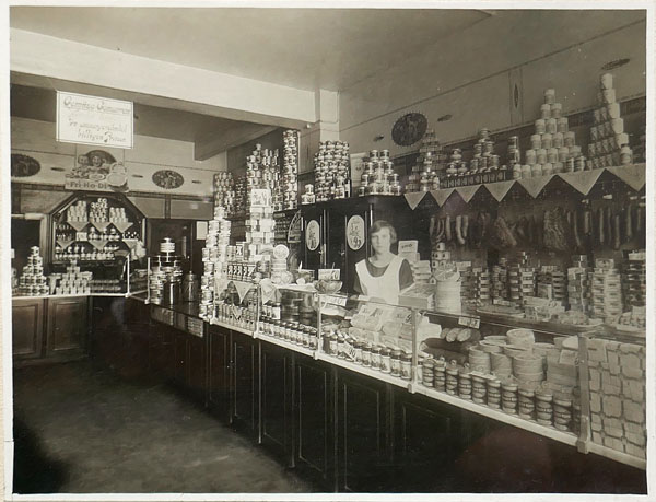 Vintage-Fotografie: Innenansicht des Lebensmittelladens Höppner in Mitteldeutschland, vermutlich in Halle
