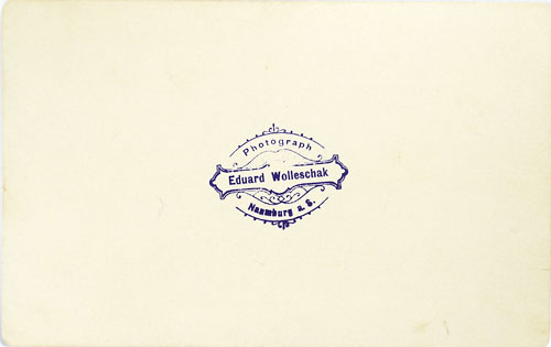Albuminabzug auf Kartonträger. Maße ca. 16,7 x 10,5 cm, geringe Alters-, Griff- und Lagerspuren. Rückseitig Fotografenstempel "Eduard Wolleschak / Naumburg". Wohl 1910er Jahre.