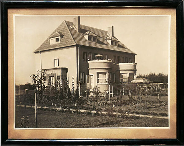 Fotografie eines Mehrfamilienlhauses, rückseitig Aufkleber des Rahmers: "Johannes Mende / Halle". Fotomaße ca. 23 x 17 cm, Außenmaße der schwarz gefassten Holzleiste aus der Zeit ca. 27 x 21,5 cm, geringe Altersspuren. Rückseitig bezeichnet "Jungblut, Faulmannstr.", wohl 1920er, 30er Jahre.