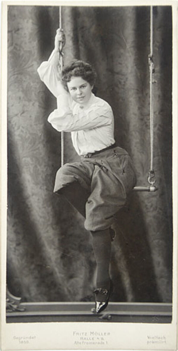 Vintage-Fotographie: Junge Dame auf einer Schaukel / 1903