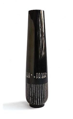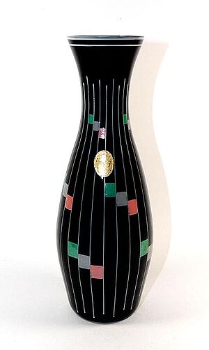 Schwarze Glasvase mit farbiger Emaille-Malerei