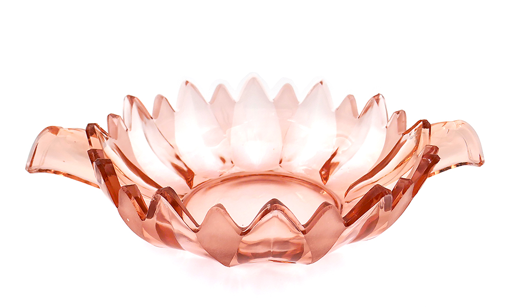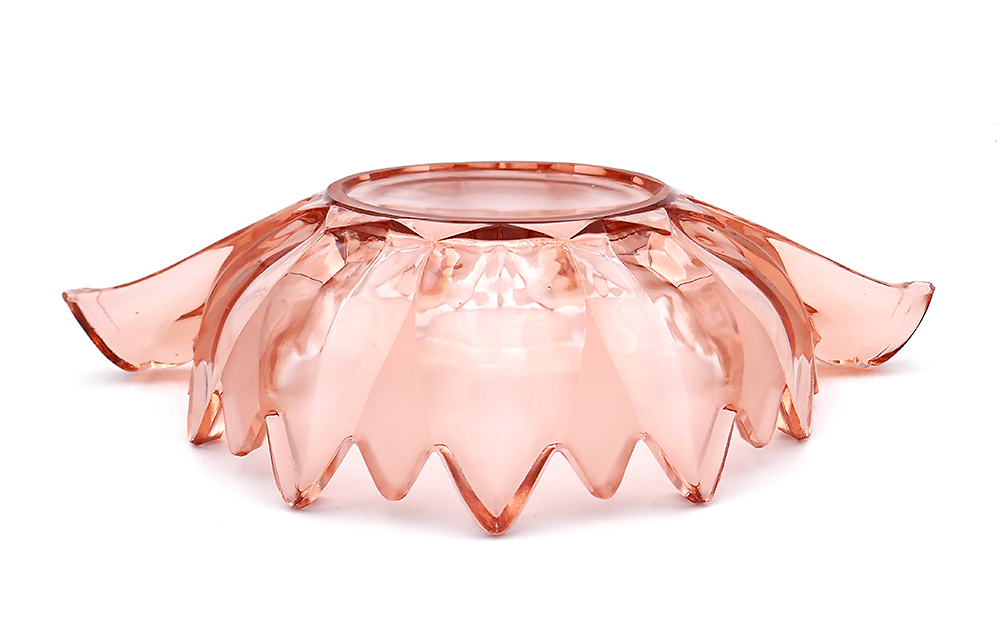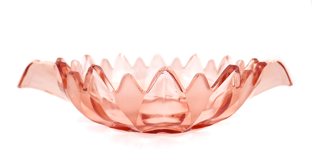 Schale aus rosafarbenem Pressglass im "Zacken-Art-deco"