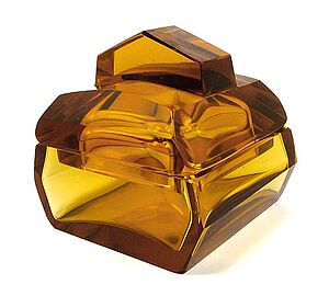 Deckeldose aus bernsteinfarbenem Kristallglas