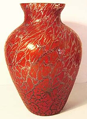 Schwarze Glasvase mit rotem Farbüberzug und figürlichem Motiv