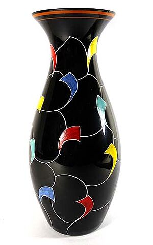 Schwarze Glasvase mit farbiger Emaille-Malerei