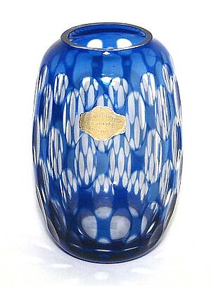 Vase aus blau überfangenem Kristallglas